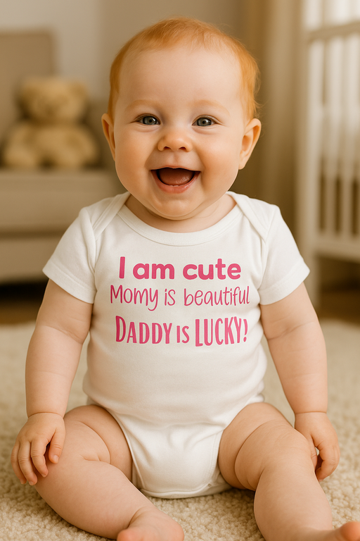 😎 Når baby siger sandheden: “I am cute Momy is beautiful DADDY is LUCKY!” – og gør det med stil! Denne hvide, humoristiske bodystocking løfter humøret ved hvert bleskift og hvert besøg. Alle forstår straks hjemmefrontens dynamik: den lille er cute, mor er beautiful, og far er… absolut LUCKY! Perfekt til fototid, hygge og kærlig kilden af de sjove egoer.