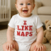 Nogle gange behøver baby ikke ord; den røde tekst på den hvide kortærmede bodystocking taler for sig selv. Den bryder isen på besøg, udløser latterkramper og giver legendariske billeder (samt en smule panik hos de mere sarte holdere).