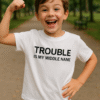 Denne sjove børne T-shirt med det frække slogan SPIT HAPPENS spreder god stemning i klapvognen, i vuggestuen/børnehaven eller på besøg hos bedsteforældre. Lad den lille rod vise, at der er stil – selv når der sker et lille uheld!