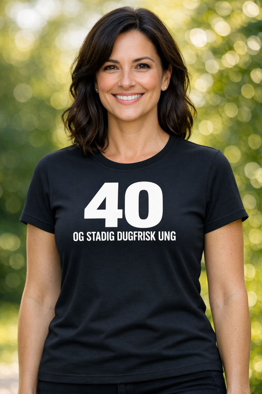 Fejr de 40 med selvtillid: 40 OG STADIG DUGFRISK UNG er den perfekte statement-tee til dig, der stadig føler dig frisk, stærk og fuld af gode historier.