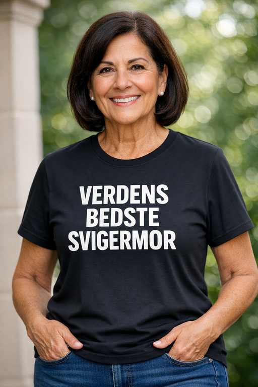 Giv familien et smil (og lidt ekstra fred ved middagsbordet) med en sort, figursyet t-shirt med den klare besked: VERDENS BEDSTE SVIGERMOR – en kærlig titel, der scorer point hos både svigermor og resten af selskabet.