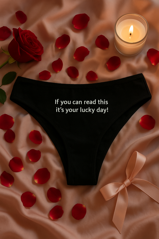 Når han kan læse det… er det allerede for sent at holde masken! 😉 Sorte trusser med et klart budskab: If you can read this it’s your lucky day! Perfekt til par, der elsker fræk romantik. 🔥