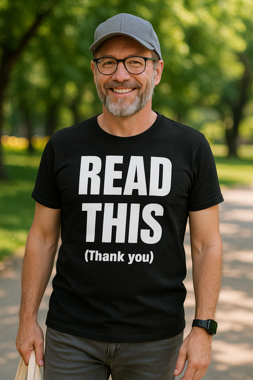 👀 Når ordene gør arbejdet for dig: READ THIS (Thank you). Denne sorte T-shirt med korte ærmer er det ultimative sociale hint: læs, grin, kom videre med dagen.