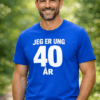 50 lys på kagen? Tag det med et smil – denne blå t-shirt med hvidt print siger det højt: JEG ER 50 ÅR UNG. Perfekt til dig, der stadig føler dig 25 indeni.