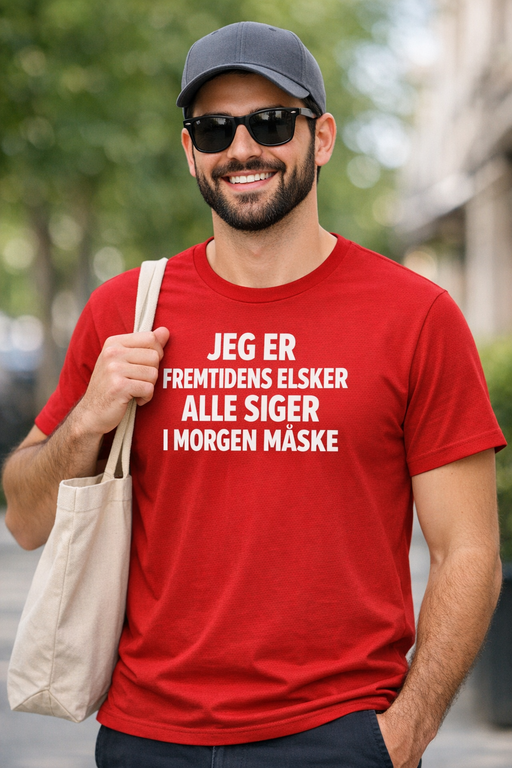 Sjov t-shirt: Jeg er fremtidens elsker – alle siger “i morgen måske”