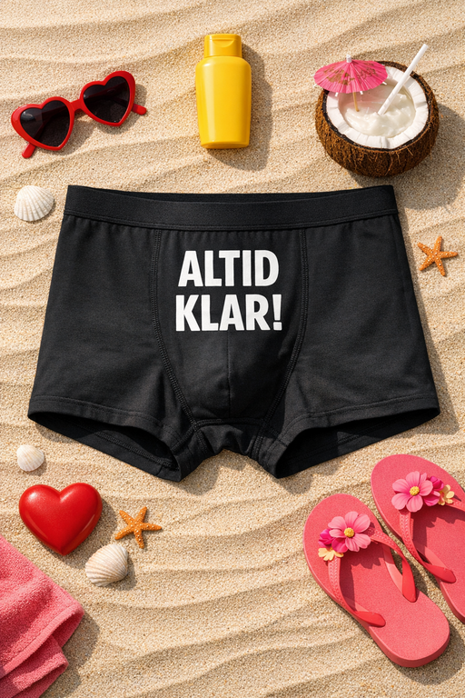 De her herreboxershorts siger det, du alligevel tænker: ALTID KLAR! Komfortable at have på – og garanteret et smil, når nogen opdager teksten.