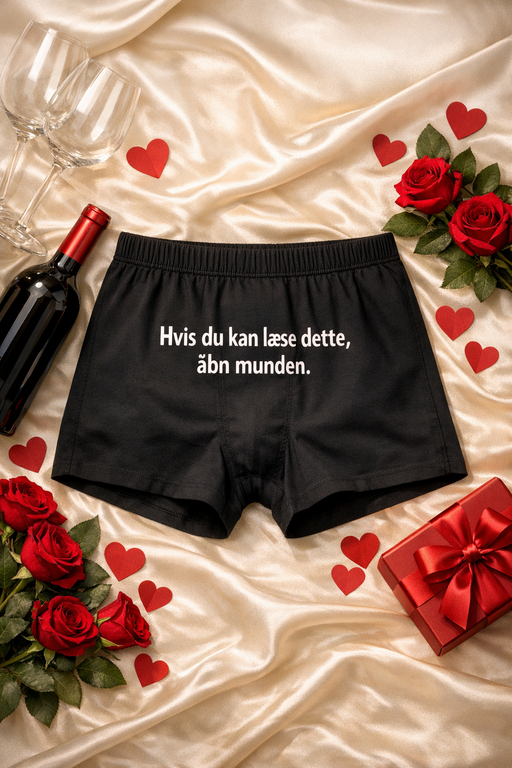 De her sorte herreboxershorts leverer humoren lige dér, hvor den rammer bedst – med teksten Hvis du kan læse dette, åbn munden. En fræk klassiker, der sætter stemningen på sekunder.