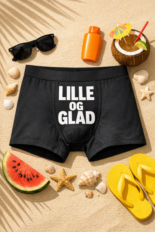 De her sorte herreboxershorts med LILLE OG GLAD siger det, mange kun tør tænke – med et grin. En fræk, selvsikker statement til hverdagen, ferien eller når du bare vil have lidt ekstra humor i skuffen.