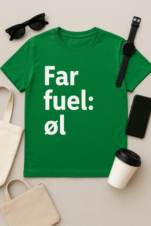 Sig hej til fars nye favorit-trøje! Vores ‘Far Fuel: Øl’ T-shirt hylder den ultimative drivkraft bag enhver rigtig far – en iskold øl efter en lang dag med familie, plæneklipning og grill. Lavet i blød, åndbar bomuld og med et tryk, der får både naboen og svigerfar til at grine. Perfekt til fodboldaftener, havefester og weekenden med ungerne. Køb den til en far du holder af – eller gør dig selv glad (du ved, du fortjener det).