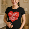 Mini-annoncering med store grin! 👶 Den pink graviditets-T-shirt med “BABY INSIDE” og små fødder siger det hele uden ultralyd. Perfekt til kommende mødre, afsløringer og sjove billeder! 📸