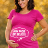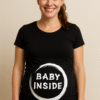 En sort graviditets-t-shirt med en sjov tankeboble og budskabet MIN FAR ER SUVEREN!! — perfekt når du vil gøre hverdagen lidt mere fotogen og lade babyens “mening” tale for sig selv.
